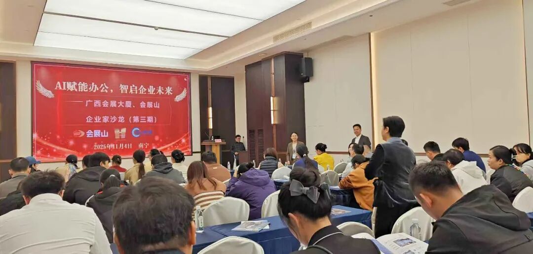 11月4日上午,江南全站行政总监郭小田、市场主管张灵芬带领骨干员工前往参加“AI赋能办公,智启企业未来--广西会展大厦、会展山企业家沙龙(第三期)”培训。此次培训由广西桂(东盟)AI学堂副校长、金牌讲师黄元东先生主讲。