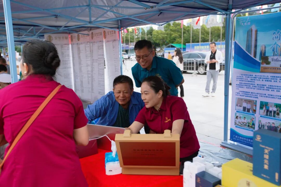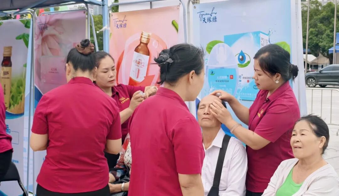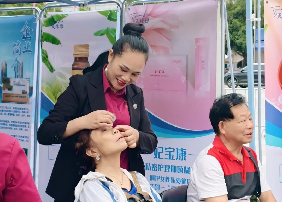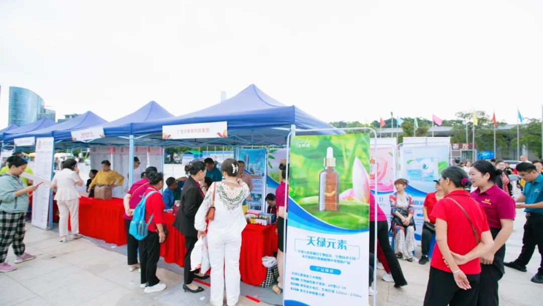 作为千人壮乡簸箕宴的重要参与方,江南全站的展位从活动开场就成了“人气打卡点”——市民们围着展位,好奇地体验集团研发的“芭蕉科技”产品,尤其是“沁润明眸舒缓滋养护眼液”,更是收获满场好评。